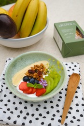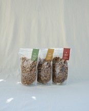 彼女の活動の中の一つで、無農薬のお花やハーブを横須賀にあるSHO FARMの一画で育てています。その活動に参加させてもらううちに、良質な土から作り出されるものが放つ力強さを都度感じています。そこからのインスピレーションで出来上がったグラノーラです。